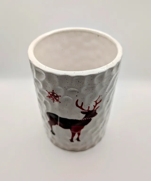 Ceramic vase with Christmas design tartan stag in red and snowflake.
